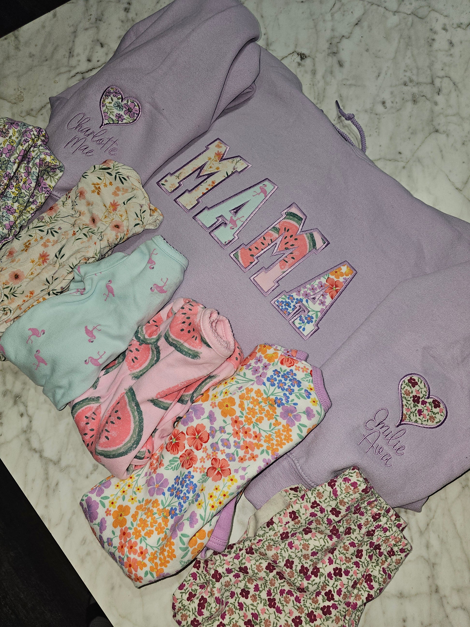 To place your order, add this listing to your cart and complete checkout, making sure all details are correct, including sweatshirt color and size, embroidery choices, and spelling of names or dates. I cannot be held responsible for incorrect information provided at checkout. I will then message you, usually within one hour during regular business hours (PST), with shipping instructions. Please send your baby clothing items to me packaged in a ziplock bag with your name clearly written on the outside. Your finished sweatshirt will be mailed back to you within 2–3 weeks, often sooner.