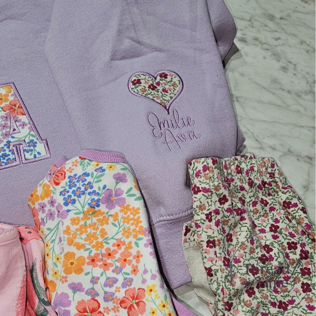 Embroidery is available as an optional add-on. I can embroider your baby’s name(s) on the sleeve or under the appliqué, as well as different wording under the main text. Some customers choose options such as “est. [year]” or their child’s name(s). There is no extra charge for embroidery unless sleeve embroidery is added, which may incur an additional cost.