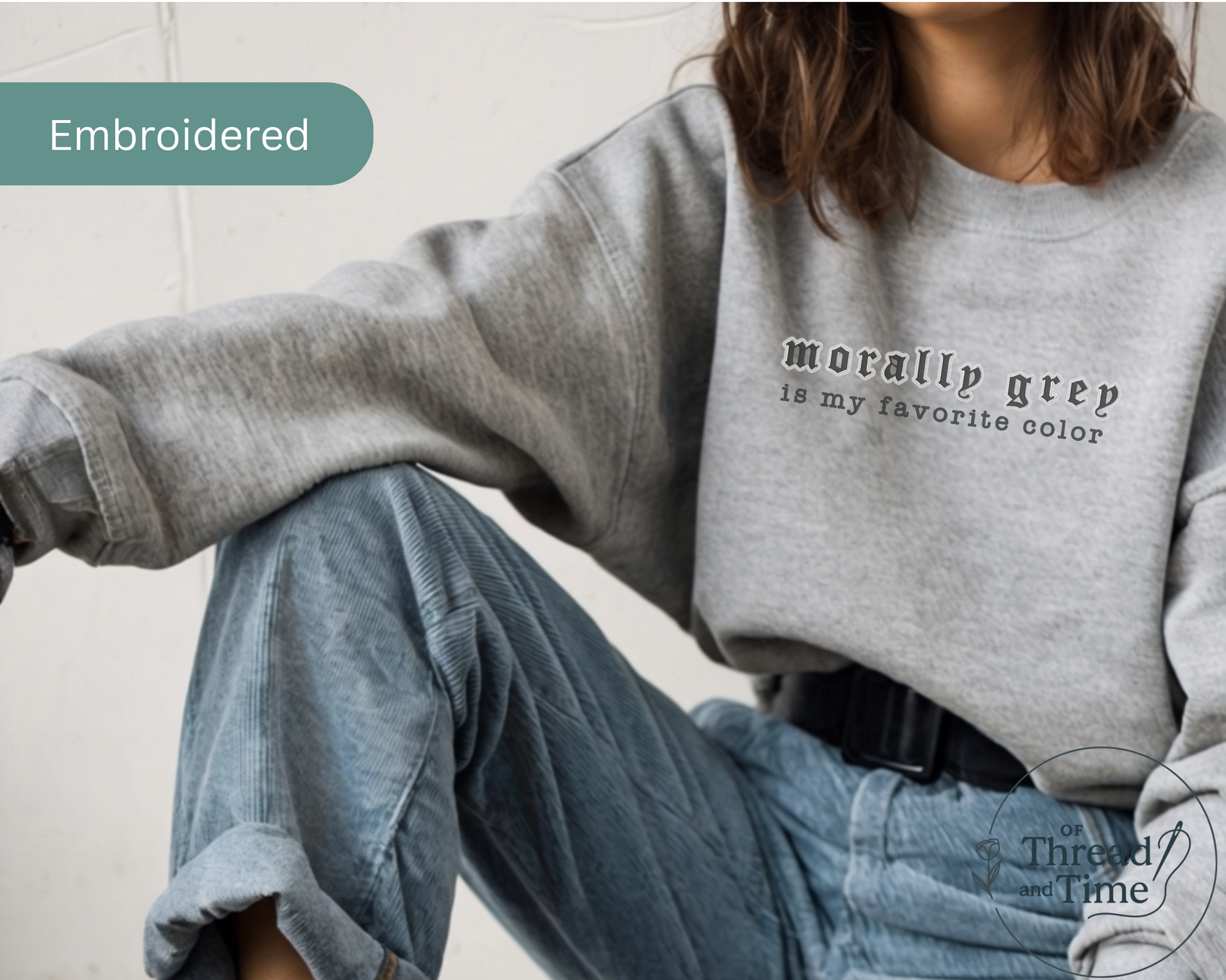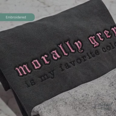 ** If you want a specific color for the fill of "morally grey", please use "Order special instructions" box at check out. Available thread colors are: White, Black, and Pink)